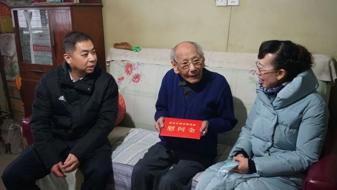 在李千里家中,古扎麗· 阿不拉詳細(xì)詢問(wèn)了他的飲食起居、健康狀況和生活情況,并致以新春佳節(jié)的問(wèn)候和祝福,及時(shí)把黨組織的關(guān)心和溫暖送到老黨員的心坎上。盡管已經(jīng)是年近100歲的高齡,李千里仍然精神矍鑠、樂(lè)觀開(kāi)朗。李千里說(shuō)到,現(xiàn)在年紀(jì)大了,眼睛看不清了,但是耳朵還好使,每天就用耳朵聽(tīng)聽(tīng)國(guó)家發(fā)生的事。現(xiàn)在的好生活離不開(kāi)中國(guó)共產(chǎn)黨的領(lǐng)導(dǎo),國(guó)泰民安,國(guó)家強(qiáng)盛,百姓就有了好生活。非常感謝自治區(qū)國(guó)資委領(lǐng)導(dǎo)在百忙之中還惦念著退休黨員群體,也祝愿設(shè)計(jì)院能夠高質(zhì)量穩(wěn)步發(fā)展。