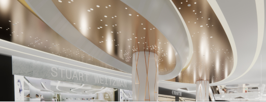 03營業(yè)廳店鋪功能劃分、動線控制、吊頂造型創(chuàng)意等非常個性且一層一個風(fēng)格,內(nèi)裝設(shè)計要求機電管線安裝后的實際凈高較大,而這與本工程原始建筑層高小、結(jié)構(gòu)梁大的情況發(fā)生了劇烈矛盾。在無bim設(shè)計配合的情況下,水、暖、電專業(yè)設(shè)計師進行了管線綜合排布,合理優(yōu)化系統(tǒng)方案和管線走向,最大限度的滿足了內(nèi)裝設(shè)計師對凈高的要求。另外,本次設(shè)計對于公共區(qū)的所有空調(diào)送排風(fēng)口、排風(fēng)口等均采用了符合造型的隱形化設(shè)計,天花造型完全看不到獨立突出的風(fēng)口。